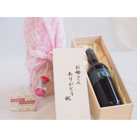 母の日 お母さんありがとう木箱セット テレデルソールロッソ赤ワイン (イタリア) 750ml 母の日カードとカーネイション付