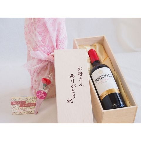 母の日 お母さんありがとう木箱セット タヴェルネッロロッソイタリア赤ワイン 750ml 母の日カードとカーネイション付