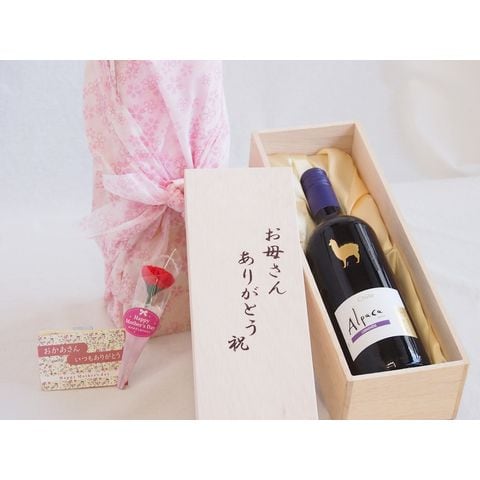 お母さんありがとう木箱セットサンタ・ヘレナアルパカカルメネール赤ワイン (チリ) 750ml 母の日カードとカーネイション付
