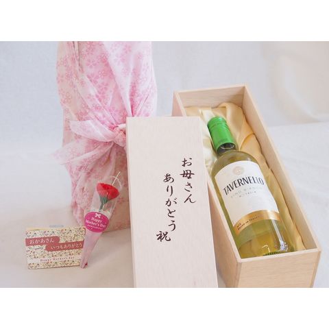 母の日 お母さんありがとう木箱セット タヴェルネッロロッソビアンコイタリア白ワインやや辛口 750ml 母の日カードとカーネイション付