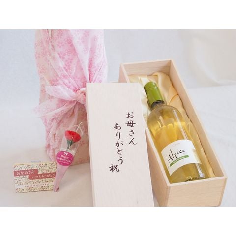 母の日 お母さんありがとう木箱セット サンタ・ヘレナアルパカソーヴィニヨン・ブラン白ワイン (チリ) 750ml 母の日カードとカーネイション付