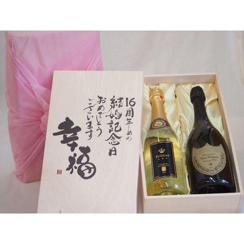 結婚記念日16周年セット 幸福いっぱいの木箱 フェリスタス22カラット金箔入りスパークワイン ドン ペリニヨン750ml×2本結婚記念日おめでとうございます デザイン書道家 榮田清峰作