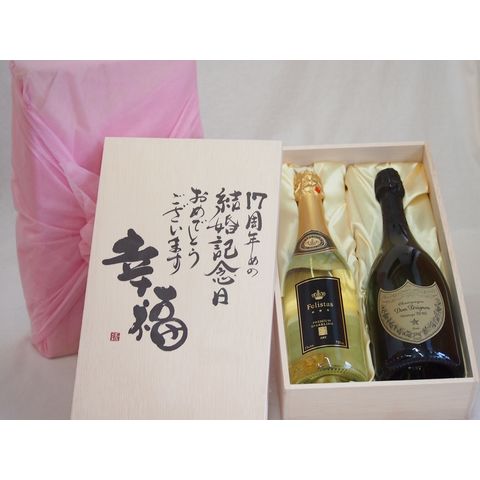 結婚記念日17周年セット 幸福いっぱいの木箱 フェリスタス22カラット金箔入りスパークワイン ドン ペリニヨン750ml×2本結婚記念日おめでとうございます デザイン書道家 榮田清峰作