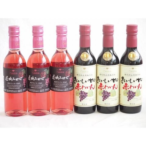 ハーフボトル6本セット(山梨県産葡萄100% 遅摘み完熟甘口ロゼワイン おいしい甘口赤わいん) 360ml×6本