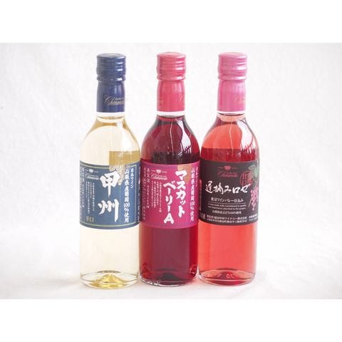 ハーフボトル3本セット(山梨県産葡萄100% 遅摘み完熟甘口ロゼワイン 山梨県産葡萄100% 甲州辛口 白ワイン 山梨県産葡萄100% マスカットベーリーAライトボディ 赤ワイン) 360ml×3本