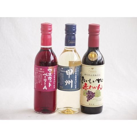 ハーフボトル3本セット(山梨県産葡萄100% 甲州辛口 白ワイン 山梨県産葡萄100% マスカットベーリーAライトボディ 赤ワイン おいしい甘口赤わいん) 360ml×3本