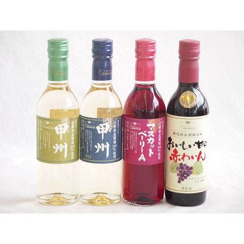 ハーフボトル4本セット(山梨県産葡萄100% 甲州辛口 白ワイン 山梨県産葡萄100% 甲州やや辛口 白ワイン 山梨県産葡萄100% マスカットベーリーAライトボディ 赤ワイン おいしい甘口赤わいん) 360ml×4本