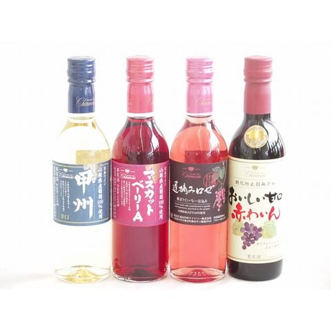 ハーフボトル4本セット(山梨県産葡萄100% 遅摘み完熟甘口ロゼワイン 山梨県産葡萄100% 甲州辛口 白ワイン 山梨県産葡萄100% マスカットベーリーAライトボディ 赤ワイン おいしい甘口赤わいん) 360ml×4本