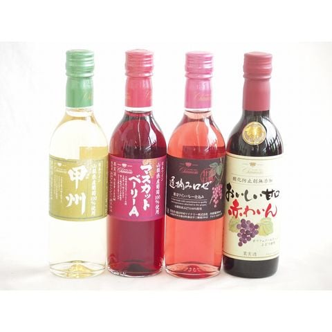 ハーフボトル4本セット(山梨県産葡萄100% 遅摘み完熟甘口ロゼワイン 山梨県産葡萄100% 甲州やや辛口 白ワイン 山梨県産葡萄100% マスカットベーリーAライトボディ 赤ワイン おいしい甘口赤わいん) 360ml×4本