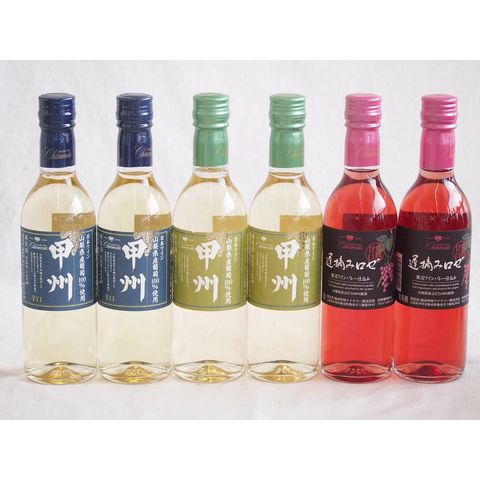 ハーフボトル6本セット(山梨県産葡萄100% 遅摘み完熟甘口ロゼワイン 山梨県産葡萄100% 甲州辛口 白ワイン 山梨県産葡萄100% 甲州やや辛口 白ワイン) 360ml×6本
