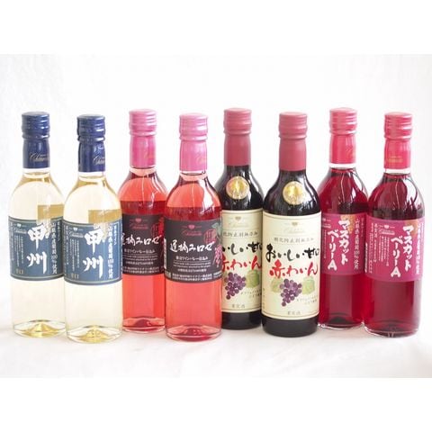 ハーフボトル8本セット(山梨県産葡萄100% 遅摘み完熟甘口ロゼワイン 山梨県産葡萄100% 甲州辛口 白ワイン 山梨県産葡萄100% マスカットベーリーAライトボディ 赤ワイン おいしい甘口赤わいん) 360ml×8本
