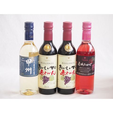 ハーフボトル4本セット(山梨県産葡萄100% 遅摘み完熟甘口ロゼワイン 山梨県産葡萄100% 甲州辛口 白ワイン おいしい甘口赤わいん) 360ml×4本