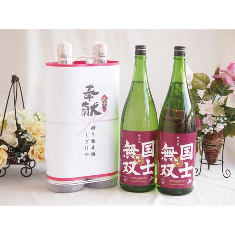 地鎮祭用奉献 縁起の良い日本酒セット 北海道産お酒2本縛り(国士無双純米酒1800ml×2本)デザイン書道家 榮田清峰作
