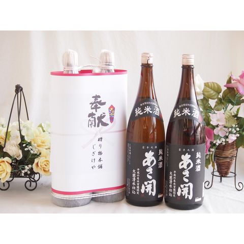 地鎮祭用奉献 縁起の良い日本酒セット 岩手県産お酒2本縛り(あさ開純米酒1800ml×2本)デザイン書道家 榮田清峰作