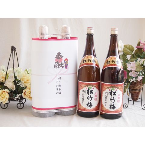 地鎮祭用奉献酒お供え日本酒セット 京都府産お酒2本縛り(上撰 松竹梅清酒1800ml×2本)デザイン書道家 榮田清峰作