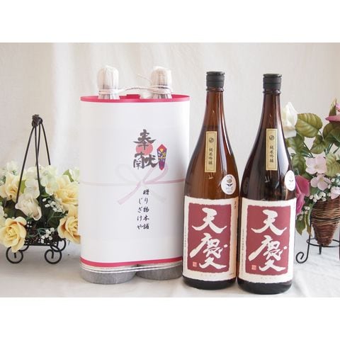 地鎮祭用奉献酒お供え日本酒セット 三重県産お酒2本縛り(早川酒造 天慶純米吟醸1800ml×2本)デザイン書道家 榮田清峰作