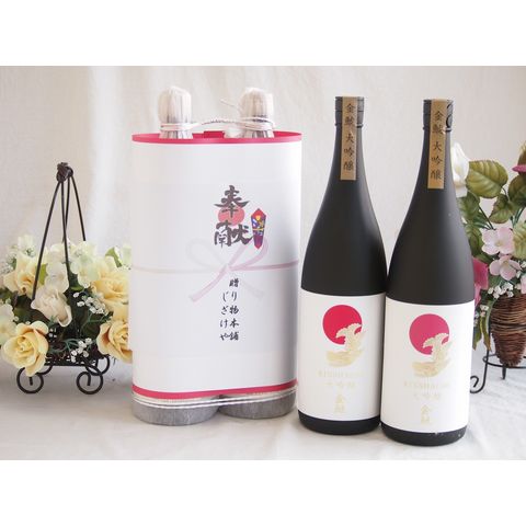 地鎮祭用奉献酒お供え日本酒セット 愛知県産お酒2本縛り(金鯱大吟醸1800ml×2本)デザイン書道家 榮田清峰作