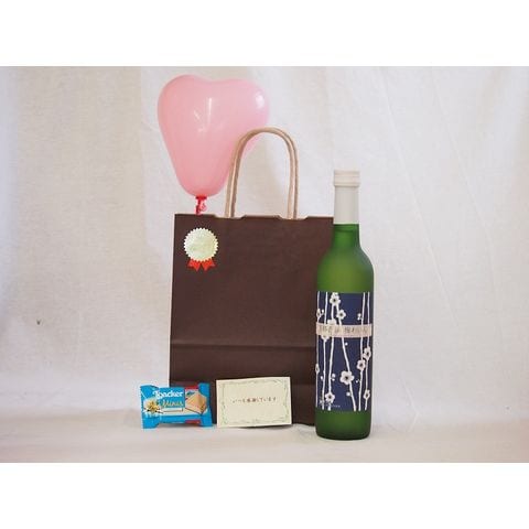 バレンタイン 風船セット国産フルーツ梅ワイン 京都青谷 梅わいん 京都山城青谷産城州白梅わいん やや甘口 丹波ワイン (京都府) 500ml メッセージカード ハート風船 ミニチョコ付き