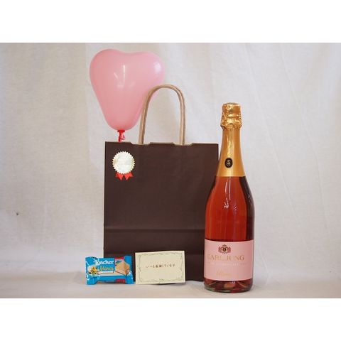 バレンタイン 風船セット脱アルコール ワイン(スパークリング) カールユングドイツロゼワインやや辛口 750ml メッセージカード ハート風船 ミニチョコ付き