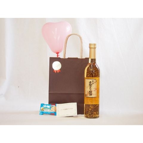 バレンタイン 風船セット万上 金箔入り梅酒 500ml メッセージカード ハート風船 ミニチョコ付き