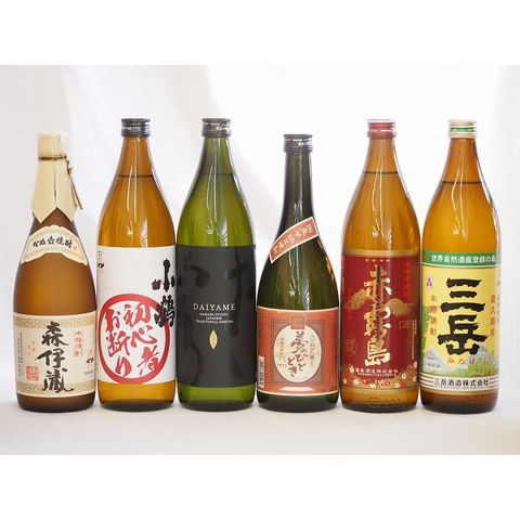 プレミアムな芋焼酎飲み比べ6本セット(森伊蔵720ml 初心者お断り900ml だいやめ900ml 三岳900ml 赤霧島900ml 夢のひととき720ml)