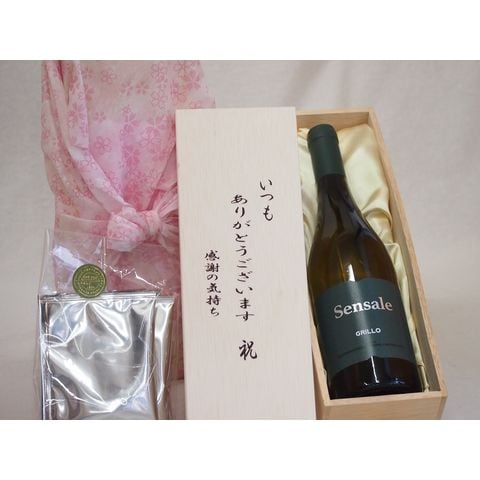贈り物いつもありがとう木箱と珈琲ドリップセット挽き立て珈琲(ドリップパック5パック)サンセーレ グリッロ 白ワイン (イタリア) 750ml