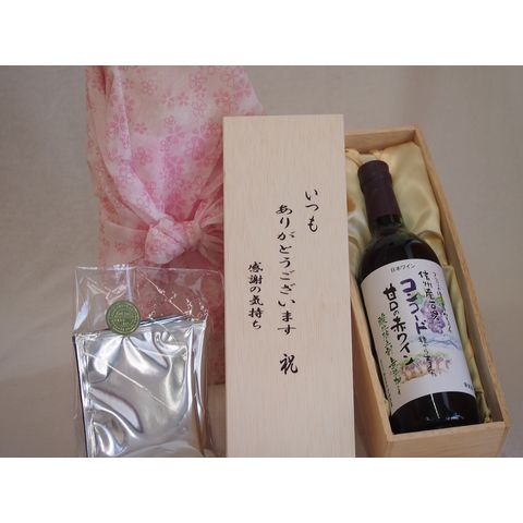 贈り物いつもありがとう木箱と珈琲ドリップセット挽き立て珈琲(ドリップパック5パック)酸化「防止剤無添加信州コンコード赤甘口 (長野県) 750ml