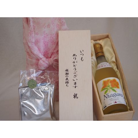贈り物いつもありがとう木箱と珈琲ドリップセット挽き立て珈琲(ドリップパック5パック)北海道産葡萄使用完熟ナイアガラ白ワイン甘口 (北海道) 720ml
