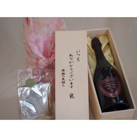 贈り物いつもありがとう木箱と珈琲ドリップセット挽き立て珈琲(ドリップパック5パック)ドンペリニヨンピンクシャンパン (フランス) 720ml