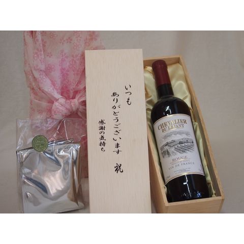 贈り物いつもありがとう木箱と珈琲ドリップセット挽き立て珈琲(ドリップパック5パック)シュバリエ・デュ・ルヴァン赤ワインライトボディ (フランス) 750ml