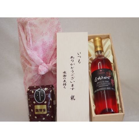 贈り物いつもありがとう木箱と珈琲豆セットオススメ珈琲豆(特注ブレンド200g)甲州遅摘み完熟甘口 ロゼワイン (山梨県) 720ml