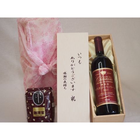 贈り物いつもありがとう木箱と珈琲豆セットオススメ珈琲豆(特注ブレンド200g)樽熟成マスカット・ベーリーA 赤ワイン (山梨県) 750ml