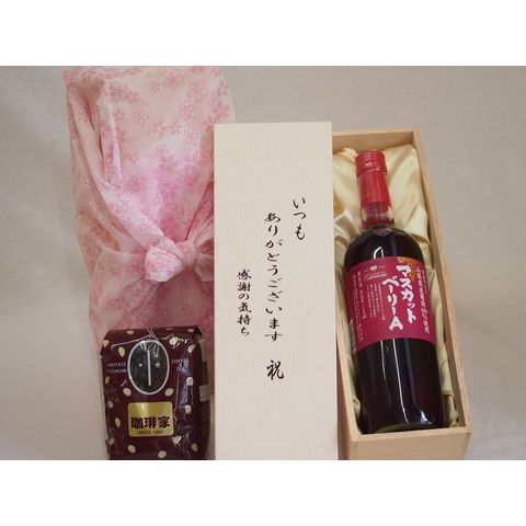 贈り物いつもありがとう木箱と珈琲豆セットオススメ珈琲豆(特注ブレンド200g)山梨県産葡萄100%使用マスカット・ベーリーA 赤ワイン (山梨県) 720ml