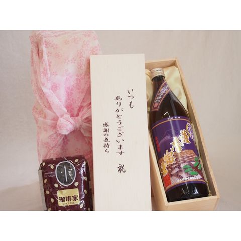 贈り物いつもありがとう木箱と珈琲豆セットオススメ珈琲豆(特注ブレンド200g)濱田酒造 本格芋焼酎 鹿児島県産紫芋使用紫薩摩富士 (鹿児島県) 900ml