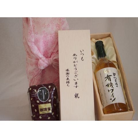 贈り物いつもありがとう木箱と珈琲豆セットオススメ珈琲豆(特注ブレンド200g)契約農場の有機ワイン(白) (長野県) 720ml