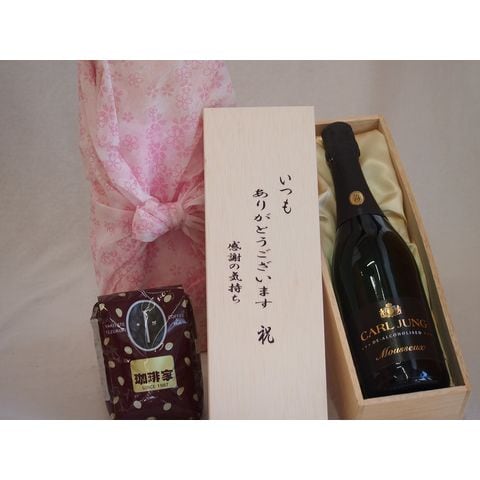 贈り物いつもありがとう木箱と珈琲豆セットオススメ珈琲豆(特注ブレンド200g)ノンアルコールワインカールユングスパークリングドライやや辛口 (ドイツ) 750ml