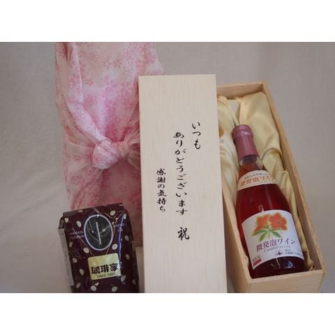 贈り物いつもありがとう木箱と珈琲豆セットオススメ珈琲豆(特注ブレンド200g)わたしにやさしい微発砲ワインキャンベルロゼワインやや甘口 (北海道) 720ml