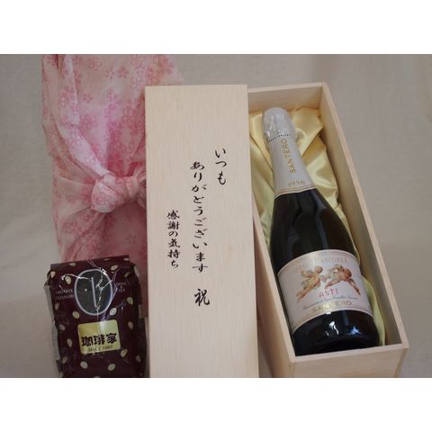 贈り物いつもありがとう木箱と珈琲豆セットオススメ珈琲豆(特注ブレンド200g)サンテロ天使のアスティスパークリング白ワイン甘口 (イタリア) 750ml
