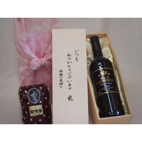 贈り物いつもありがとう木箱と珈琲豆セットオススメ珈琲豆(特注ブレンド200g)ベルキャサリン赤ワイン (フランス) 750ml