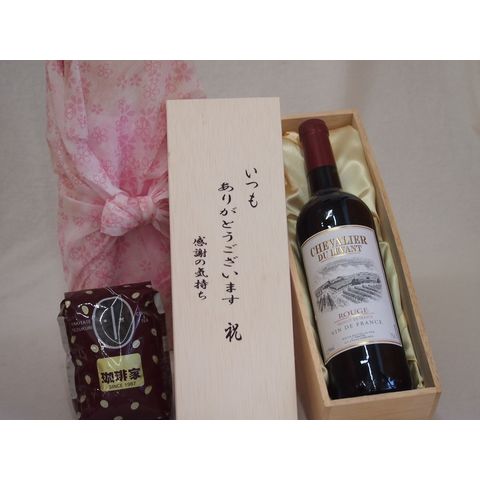 贈り物いつもありがとう木箱と珈琲豆セットオススメ珈琲豆(特注ブレンド200g)シュバリエ・デュ・ルヴァン赤ワインライトボディ (フランス) 750ml