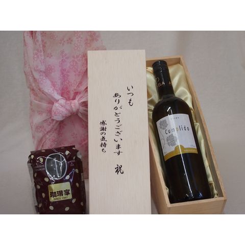 贈り物いつもありがとう木箱と珈琲豆セットオススメ珈琲豆(特注ブレンド200g)クンプリードアイレン白ワイン (スペイン) 750ml