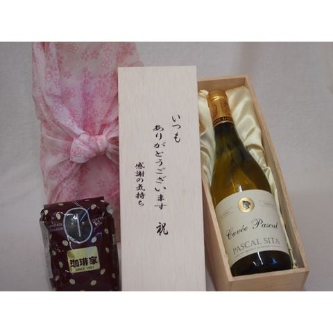 贈り物いつもありがとう木箱と珈琲豆セットオススメ珈琲豆(特注ブレンド200g)パスカル・シータキュヴェ・ブラン白ワインやや辛口 (フランス) 750ml