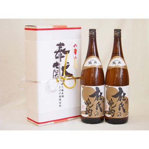 地鎮祭用奉献酒 日本酒2本セット(吉乃川酒造 本醸造 杜氏の晩酌 1800ml×2本)デザイン書道家 榮田清峰作一デザイン1番(金銀水引・眼鏡タイプ)