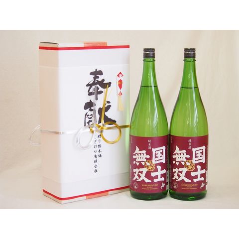 地鎮祭用奉献酒 北海道日本酒2本セット(高砂酒造 国士無双 純米 1800ml×2本)デザイン書道家 榮田清峰作一デザイン2番(金銀水引・文化タイプ)