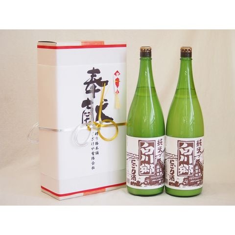 地鎮祭用奉献酒 岐阜県日本酒2本セット(三輪酒造 白川郷にごり酒1800ml×2本)デザイン書道家 榮田清峰作一デザイン2番(金銀水引・文化タイプ)