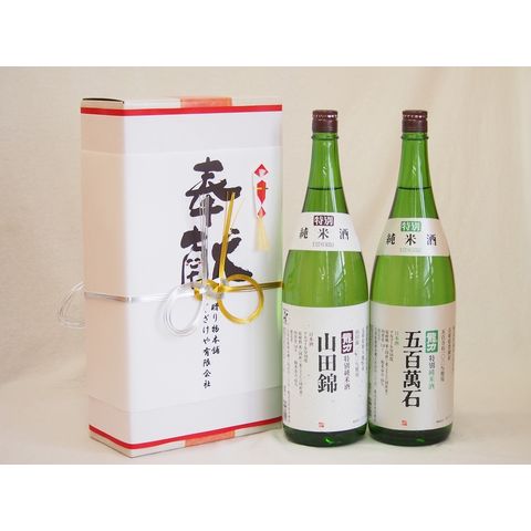 地鎮祭用奉献酒 兵庫県日本酒2本セット(本田酒造 山田錦 五百萬石特別純米1800ml×2本)デザイン書道家 榮田清峰作一デザイン2番(金銀水引・文化タイプ)