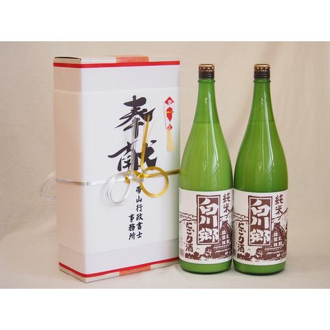 地鎮祭用奉献酒 岐阜県日本酒2本セット(三輪酒造 白川郷にごり酒1800ml×2本)デザイン書道家 榮田清峰作一デザイン1番(金銀水引・文化タイプ)