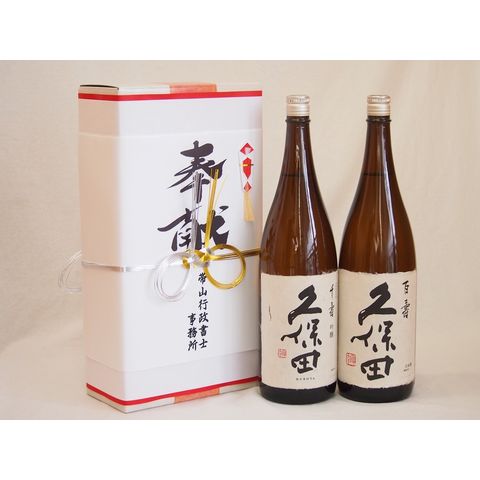 地鎮祭用奉献酒 新潟県日本酒2本セット(朝日酒造 久保田百寿 千寿 1800ml×2本)デザイン書道家 榮田清峰作一デザイン1番(金銀水引・文化タイプ)