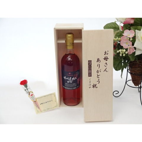 母の日 ギフトセット ワインセット お母さんありがとう木箱セット(シャンモリワイン 山梨県産ぶどう100% 甲州遅摘みロゼワイン 720ml 盛田甲州ワイナリー(山梨県))母の日カード お母さんありがとうカーネイション