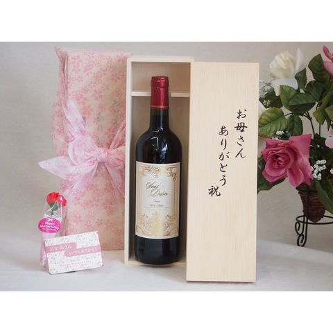 母の日 ワインセット お母さんありがとう木箱セット(サン ディヴァン ルージュ赤(フランス)750ml)母の日カード お母さんありがとうカーネイション